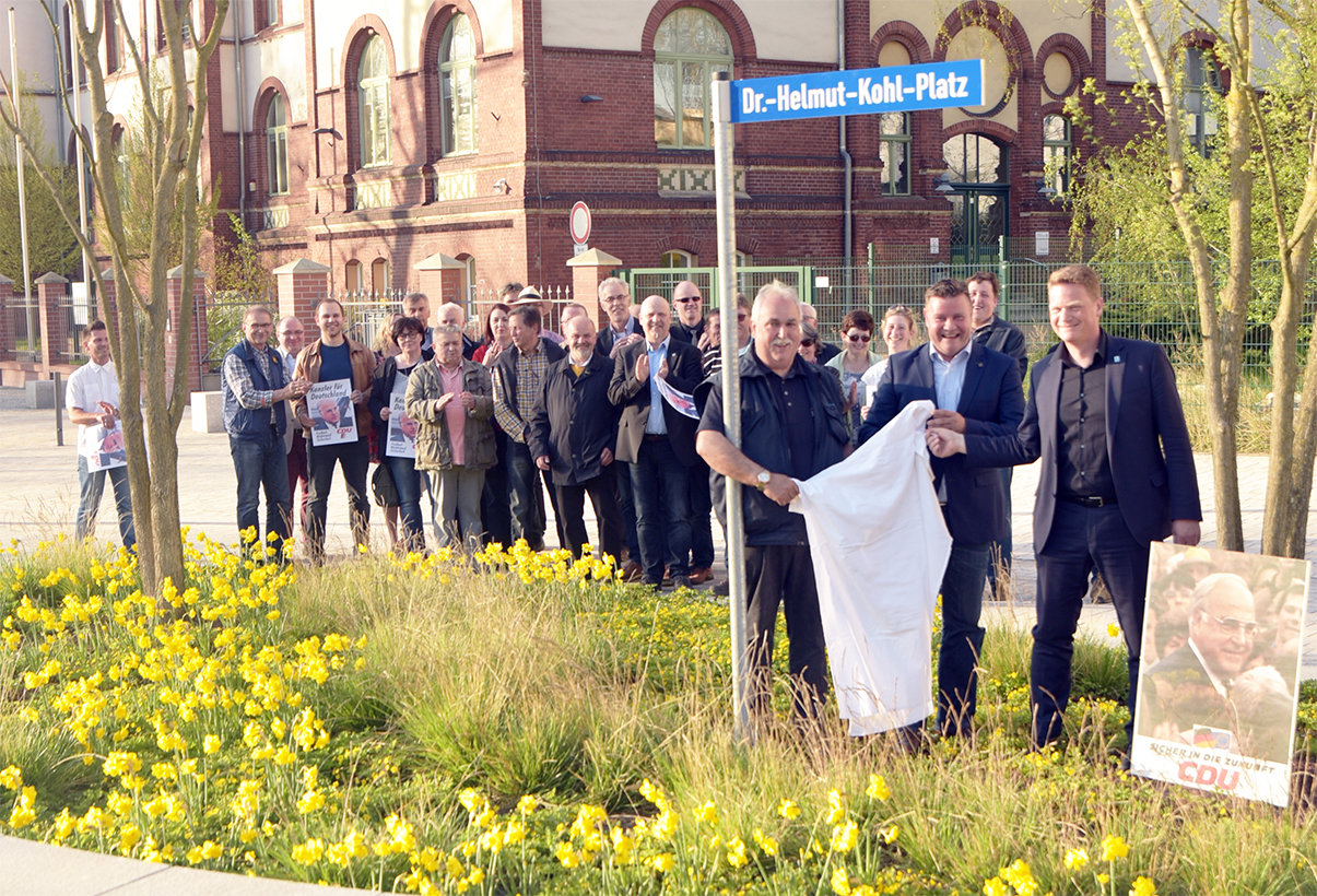Burg hat seit Montag einen "Dr.-Helmut-Kohl-Platz". Nach der endgültigen Entscheidung des Stadtrates und des aktiven Engagements des Stadtratsvorsitzenden Markus Kurze MdL ist der „Dr.-Helmut-Kohl-Platz“ vor dem Landratsamt in Burg eingeweiht worden.