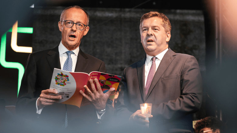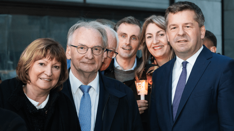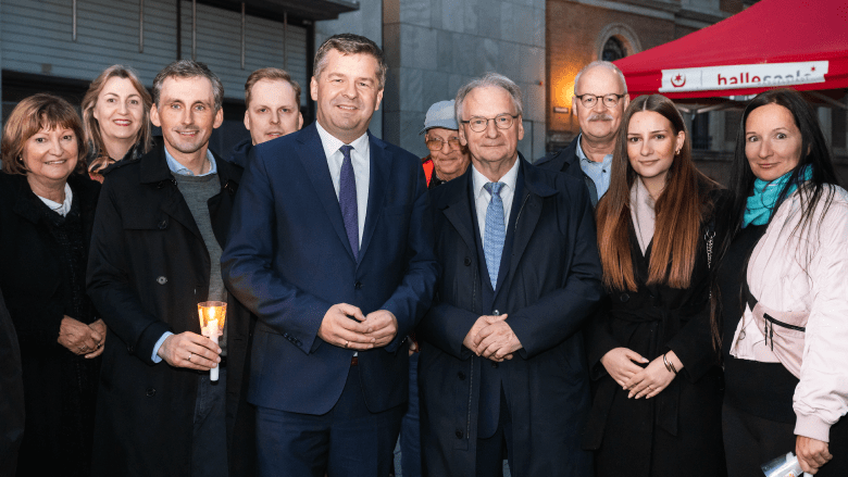 Bundeskanzler Friedrich Merz, Ministerpräsident Dr. Reiner Haseloff und Minister Sven Schulze nahmen am 3. Oktober auf dem halleschen Marktplatz am traditionellen Kerzensingen teil. „Total schön“, fanden viele Hallenser diesen Besuch.