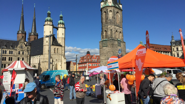 Mit Unterstützung der CDU Sachsen-Anhalt, der Frauen Union und der Jungen Union in Sachsen-Anhalt ist die CDA am Maifeiertag bzw. dem Tag der Arbeit mit Menschen vor Ort ins Gespräch gekommen. „Wir wollen zeigen, dass die CDU in Sachsen-Anhalt einen Arbeitnehmerflügel hat“, sagt Mario Karschunke, Mitgliederbeauftragter der CDU Sachsen-Anhalt und Vorsitzender der CDA im Kreisverband Salzland. „Als letzte Volkspartei ist es uns sehr wichtig, mit den Menschen zu diskutieren und zu wissen, wo der Schuh drückt“, so Karschunke.