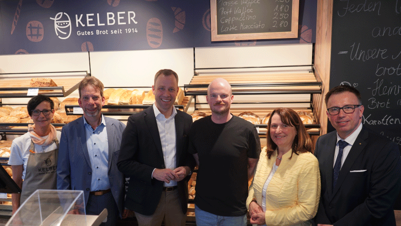 1. Station war die Bäckerei Kelber, die seit 1914 besteht. Dort gab uns Kieran Schneider einen Einblick in seine Backstube und in das Bäckerhandwerk. Thema des Gespräches waren die steigenden Kosten für Energie und Rohstoffe, die eine große Herausforderung darstellen.
